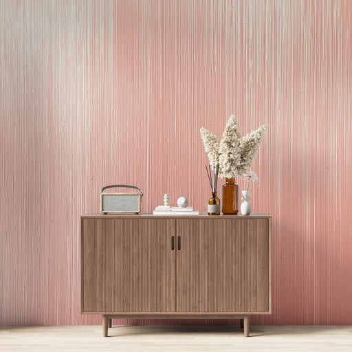 Προβολή πλήρων λεπτομερειώνΤαπετσαρία τοιχογραφίας με μεταλλικό εφέ | Ροζ διαβάθμιση με γραμμική υφή