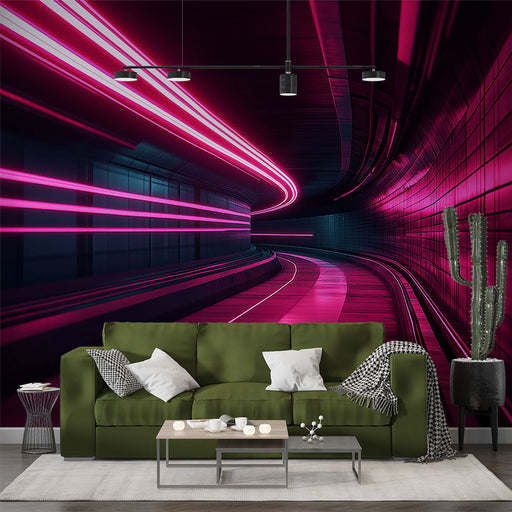 WonderMuralΑυτό το γοητευτικό ταπετσαρία τοιχώματος απεικονίζει ένα μελλοντικό τούνελ, φωτισμένο με λωρίδες ροζ νέον που δημιουργούν μια δυναμική και ενεργητι...