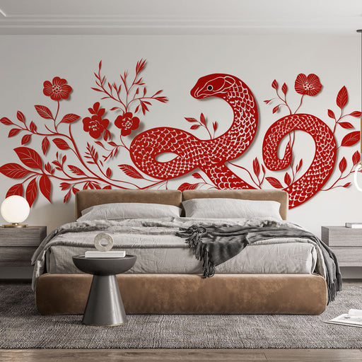 WonderMuralΑυτή η συναρπαστική ταπετσαρία τοίχου διαθέτει ένα στυλιζαρισμένο φίδι που είναι πλεγμένο ανάμεσα σε ζωντανά κόκκινα λουλούδια, δημιουργώντας μια σ...
