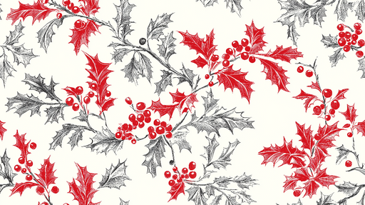 Προβολή πλήρων λεπτομερειώνΤαπετσαρία τοίχου shabby chic | Κόκκινο σχέδιο με πουρνάρι σε ανοιχτό φόντο