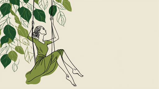 Προβολή πλήρων λεπτομερειώνTapete γυναίκα σε κούνια | Κομψή γυναικεία σιλουέτα που περιβάλλεται από πράσινο φύλλωμα