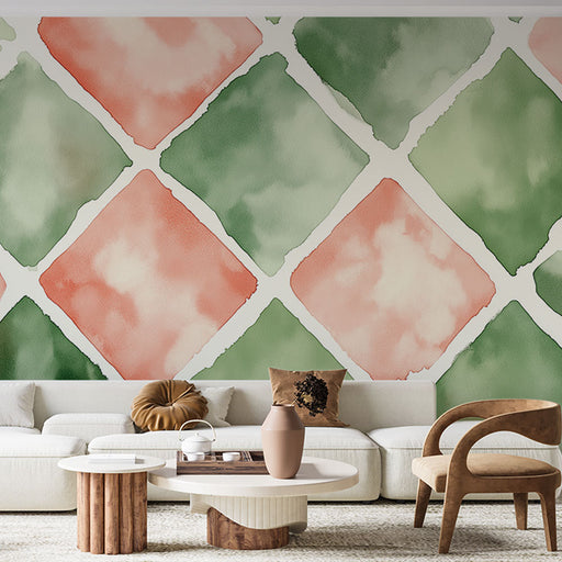 WonderMuralΑυτή η ταπετσαρία τοιχογραφίας διαθέτει ένα μοτίβο με διαμάντια ακουαρέλας, εναλλάσσοντας μεταξύ απαλών πράσινων τόνων και χαλαρωτικού κοραλλιού. Τ...