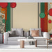 Ανακαλύψτε το γεωμετρικό ταπετσαρία τοίχου μας με αφηρημένο και πολύχρωμο σχέδιο. Ιδανικό για να προσθέσετε μια καλλιτεχνική και μοντέρνα πινελιά στο σαλόνι ή το γραφείο σας, αυτή η ταπετσαρία συνδυάζει κυκλικά σχήματα και καθαρές γραμμές σε αποχρώσεις του κόκκινου, του πράσινου και του πορτοκαλί σε μια μπεζ φόντο.