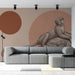 Αυτό το μοναδικό ταπετσαρία διαθέτει ένα στιλιζαρισμένο πίθηκο που ξαπλώνει ειρηνικά σε ένα βράχο, περιτριγυρισμένο από γεωμετρικά μοτίβα σε ζεστά χρώματα. Οι λεπτές και λεπτομερείς γραμμές δίνουν μια καλλιτεχνική πινελιά στη διακόσμησή σας. Το απαλό και ουδέτερο υπόβαθρο αντιδρά με τα γραφικά στοιχεία και δημιουργεί μια γαλήνια και μοντέρνα ατμόσφαιρα.