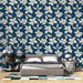 Αυτό το μαγευτικό ταπετσαρία τοιχωμάτων διαθέτει ένα εύθραυστο λουλουδένιο μοτίβο με λευκά λουλούδια χαραγμένα στο χέρι, να ανθίζουν ενάντια σε ένα βαθύ μπλε φόντο. Η αρμονία μεταξύ των λουλουδιών και των φύλλων τους δημιουργεί μια αίσθηση εκλεπτυσμένης και ελαφριάς ατμόσφαιρας, δημιουργώντας ένα φιλόξενο περιβάλλον.