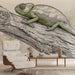 Το χαρτί τοίχου αυτό διαθέτει ένα όμορφα εικονογραφημένο χαμαιλέοντα που ξεκουράζεται σε ένα ξύλινο κλαδί. Οι λεπτομέρειες της εικονογράφησης, σε συνδυασμό με τις αποχρώσεις του πράσινου και του μαύρου, δημιουργούν έναν ηρεμιστικό και φυσικό αποτέλεσμα.