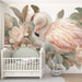 Tapete flamingo | Φλαμίνγκο περιβάλλεται από λεπτά λουλούδια σε απαλούς τόνους
