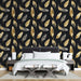 Ταπετσαρία τοιχωμάτων με χρυσά και ασημένια φτερά | Σχέδιο σε μαύρο φόντο