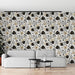 Ταπετσαρία τοιχωμάτων λουλουδιών μαύρη και χρυσή | Κομψά μοτίβα λουλουδιών σε λευκό φόντο