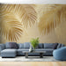 Tapete με χρυσά φύλλα | Κομψά φύλλα φοινικόδεντρου σε υφή φόντου