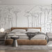 Δέντρο τοιχογραφίας | Δάσος σε λευκή άμμο σε γραμμική τέχνη