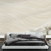 Ταπετσαρία τοιχογραφίας ρευστών γραμμών | Αφηρημένο σχέδιο λευκών γραμμών σε μπεζ φόντο