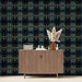 Κομψό τοιχοταινία με λουλούδια | Στιλιζαρισμένο μοτίβο λουλουδιών σε μπλε και χρυσό πάνω σε μαύρο φόντο