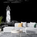 Αυτή η μαγευτική ταπετσαρία τοίχου διαθέτει μια στυλιζαρισμένη απεικόνιση ενός φάρου που αναδύεται από βράχια, όλα σε ένα βαθύ μαύρο φόντο. Οι λεπτές λευκές γραμμές δημιουργούν μια εντυπωσιακή αντίθεση, προσφέροντας μια μοντέρνα και κομψή πινελιά στο εσωτερικό σας.