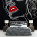 Αυτή η συναρπαστική ταπετσαρία τοίχου διαθέτει ένα στυλιζαρισμένο γυναικείο πορτρέτο, όπου λεπτές λευκές γραμμές περιγράφουν τα περιγράμματα του προσώπου σε ένα βαθύ μαύρο φόντο. Τα ζωντανά κόκκινα χείλη προσθέτουν μια πινελιά κομψότητας και τόλμης, δημιουργώντας μια εντυπωσιακή αντίθεση με το υπόλοιπο μινιμαλιστικό σχέδιο.