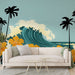 Αυτή η ταπετσαρία τοιχογραφίας προκαλεί μαγευτικά τροπικά τοπία, με ένα μεγάλο τιρκουάζ κύμα στέμμα με λευκό αφρό, περιτριγυρισμένο από μεγαλοπρεπείς μαύρους φοίνικες και πινελιές από έντονα κίτρινα λουλούδια. Το χαλαρωτικό μπλε φόντο προσθέτει μια χαλαρωτική διάσταση στο σύνολο, ιδανικό για να φέρει μια πινελιά εξωτισμού στο εσωτερικό σας.