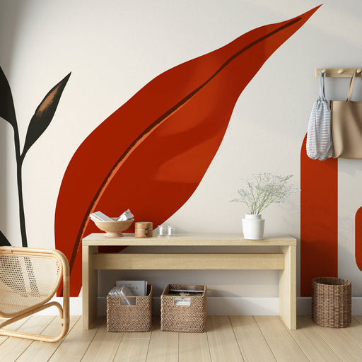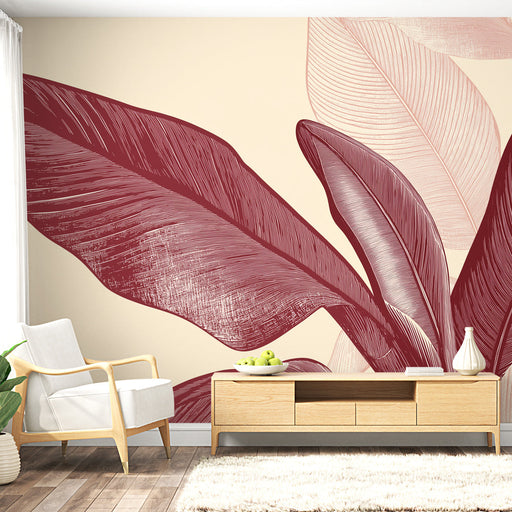 WonderMuralEste cautivador papel pintado presenta un patrón de hojas de palma burdeos pintadas delicadamente, sumergiendo tu espacio en un ambiente cálido y a...