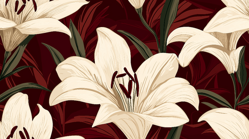WonderMuralEste papel pintado mural presenta majestuosos lirios blancos, acentuados por un fondo granate rico y profundo. Las flores, con sus detalles meticul...