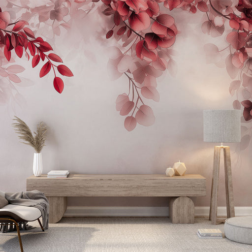 WonderMuralEste papel pintado mural floral presenta un hermoso patrón de hojas y flores rojas que flotan delicadamente sobre un fondo pastel. Los tonos de roj...
