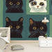 El fondo colorido resalta los detalles artísticos de estas caras felinas, aportando un toque de encanto y originalidad a cualquier habitación. Este diseño es ideal para habitaciones de niños, salas de estar e incluso oficinas que buscan agregar un toque de humor y vitalidad.
