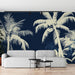 Papel pintado azul verdoso | Palmas en silueta sobre fondo oscuro