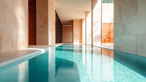 Ver todos los detallesPapel pintado interior moderno | Ambiente relajante de piscina cubierta