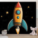 Este cautivador papel pintado mural presenta un cohete retro en colores brillantes, propulsado a través de un oscuro cielo estrellado. La ilustración está inspirada en dibujos animados clásicos, con un toque artístico que atraerá tanto a niños como a adultos. Los tonos de rojo, azul y amarillo del cohete contrastan perfectamente con el fondo negro, creando un ambiente lúdico e imaginativo.