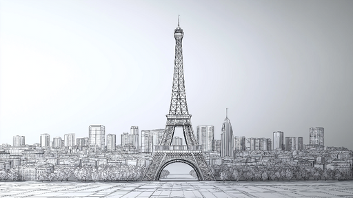 WonderMuralEste llamativo papel pintado mural presenta una ilustración en línea de la famosa Torre Eiffel, rodeada por el paisaje urbano de París. Los contorn...