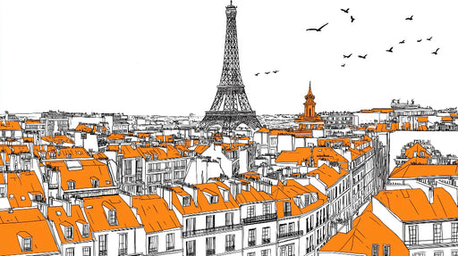 WonderMuralEste papel pintado mural ilustra una vista panorámica de París, destacando los coloridos tejados naranjas y la famosa Torre Eiffel al fondo. El con...