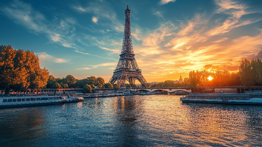 Ver todos los detallesPapel pintado Eiffel Tower | Vibrant Sunset over the Seine with the Eiffel Tower
