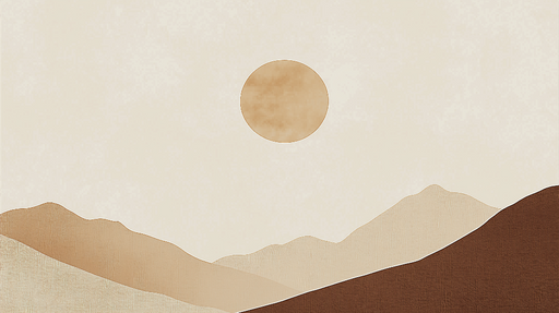 WonderMuralEste papel pintado mural presenta un paisaje minimalista , ilustrando montañas estilizadas en tonos de beige y terracota. El suave sol en el fondo...