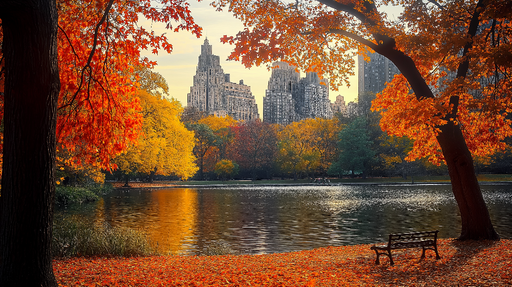 Ver todos los detallesPapel pintado new York | Paisaje urbano con árboles con hojas doradas