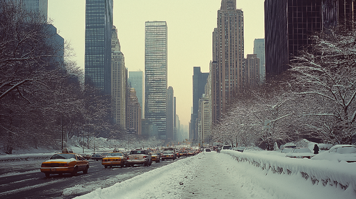 Ver todos los detallesPapel pintado New York | Snowy street with skyscrapers
