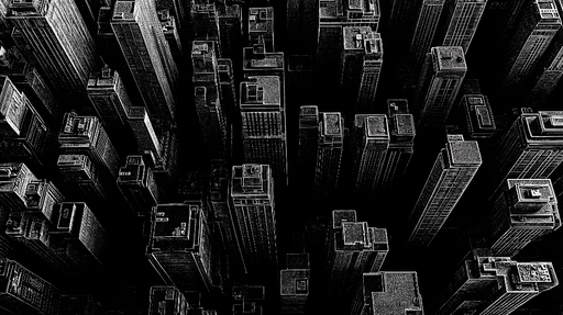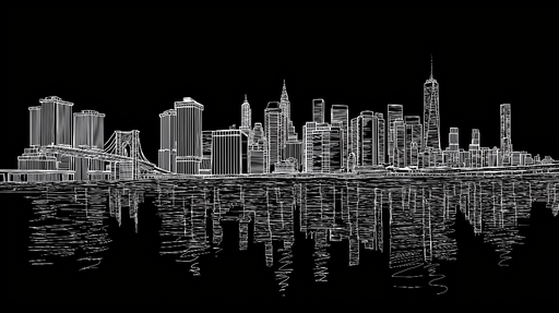 WonderMuralEste papel pintado mural presenta una silueta estilizada de rascacielos, dibujada en líneas blancas sobre un fondo negro, creando un impactante efe...