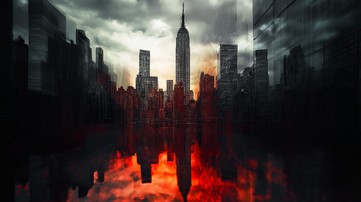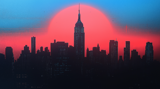 WonderMuralDescubre nuestro papel pintado que muestra las famosas siluetas de los rascacielos de Nueva York, bellamente ilustrados sobre un fondo rojo vibrant...