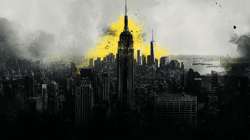 Art'loloEste Papel pintado New York presenta una interpretación artística del famoso horizonte de la ciudad, adornado con vibrantes salpicaduras de color. ...