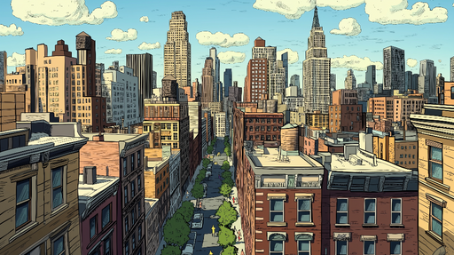 WonderMuralNuestro papel pintado ofrece una representación estilizada del horizonte de Nueva York, destacando una variedad de edificios icónicos y animados te...