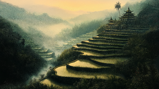 WonderMuralEste papel pintado mural evoca un magnífico paisaje de terrazas de arroz bañadas por la suave luz del amanecer. Los tonos de verde y oro crean un a...
