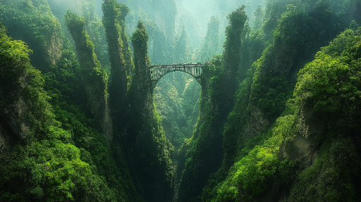 Ver todos los detallesPapel pintado paisaje de montaña | Escena de desfiladeros frondosos con un majestuoso puente