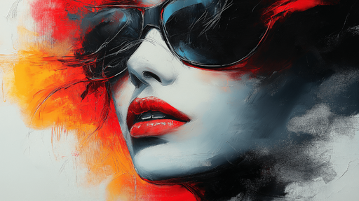 Ver todos los detallesPapel pintado retrato artístico | Rostro femenino vibrante con gafas de sol