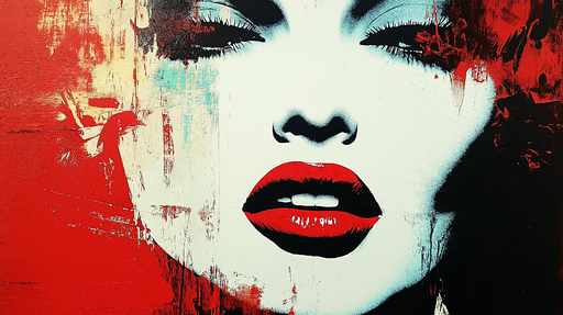 WonderMuralEste cautivador Papel pintado presenta el rostro de una mujer estilizada, realzada con colores vivos como el rojo y el naranja. Los labios audaces ...