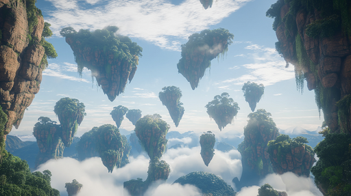 WonderMuralEste papel pintado mural presenta un universo onírico con exuberantes islas flotantes destacándose contra un cielo azul. Cada isla, cubierta de veg...
