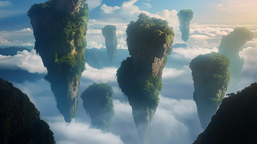 Ver todos los detallesPapel pintado paisajes fantásticos | Montañas flotantes en medio de las nubes