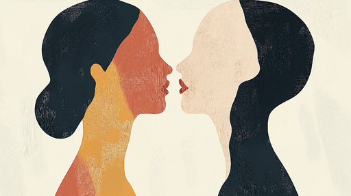 Ver todos los detallesPapel pintado faces | Siluetas artísticas de dos mujeres besándose