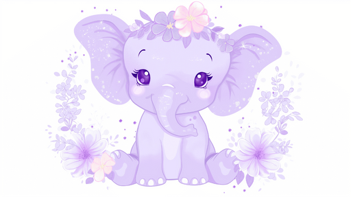 WonderMuralEste papel pintado presenta una encantadora ilustración de un elefante en tonos morados, adornado con delicadas flores y relucientes motivos floral...