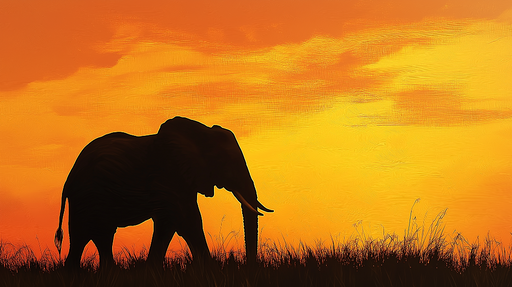 WonderMuralEste cautivador lienzo representa un elefante majestuoso de pie orgullosamente frente a un atardecer ardiente, creando una atmósfera que es poderos...