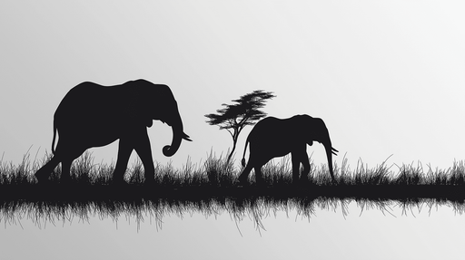 Ver todos los detallesPapel pintado elefantes | Silueta pacífica de elefantes junto al agua