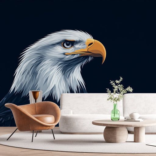 WonderMuralEste papel pintado mural presenta un llamativo retrato de un águila, ilustrado con detalles realistas. El ave, con su majestuoso plumaje y mirada p...