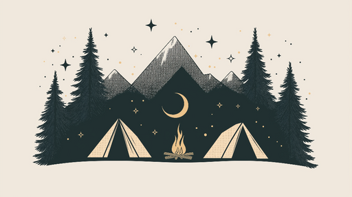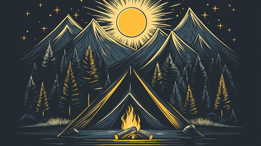 WonderMuralEste papel pintado evoca el espíritu de acampar con un diseño cálido que representa tiendas de campaña alrededor de una fogata. En el fondo, un cie...