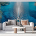 Para armonizar este papel pintado, opta por colores suaves como blanco, beige o tonos pastel que realzarán el brillo y la frescura del universo marino.